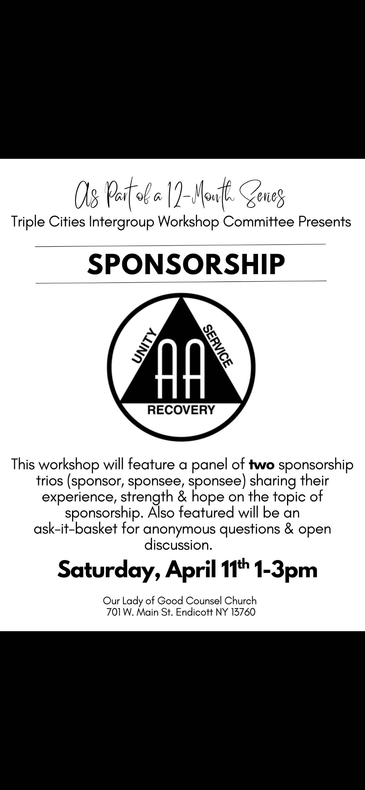 Triple Cities Intergroup lists only AA related events, subject to TCI approval for listing. Approval takes place at TCI meetings on the last Sunday of each month – submission deadline is the third Sunday of each month. Submit: